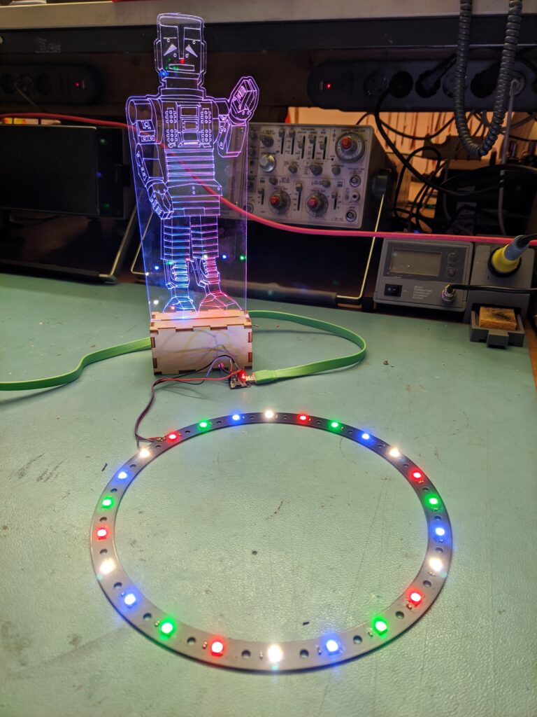 Mats hatte die Lötstation in Betrieb und hat eine herzförmige Platine mit richtig vielen einzelnen LEDs gelötet. Im Anschluss hat er noch eine passende Holzbox zur Aufbewahrung gelasert und es mit seinem Projekt sogar in die NWZ geschafft! 💚